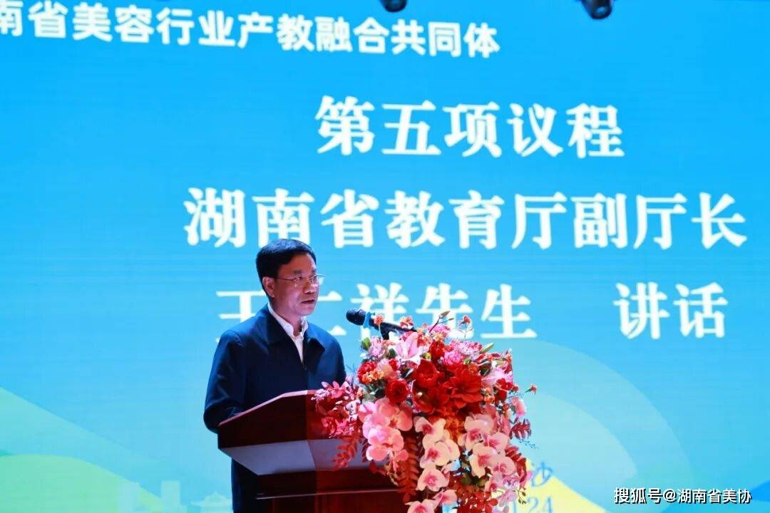 湖南省教育厅副厅长王仁祥在共同体成立大会中致辞,他指出,共同体的成立是深化职业教育改革、推动产教融合的重要举措,将促进教育链、人才链与产业链、创新链有机衔接。他期待共同体在共建实训基地、共享教学资源、共研行业标准等方面发挥实效。省教育厅将持续支持共同体建设,期望其充分发挥示范作用,为湖南美业输送更多德技并修的高素质技能人才。