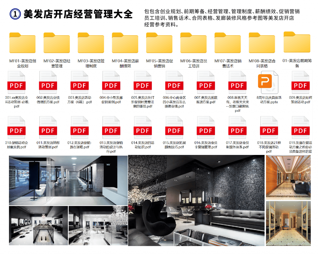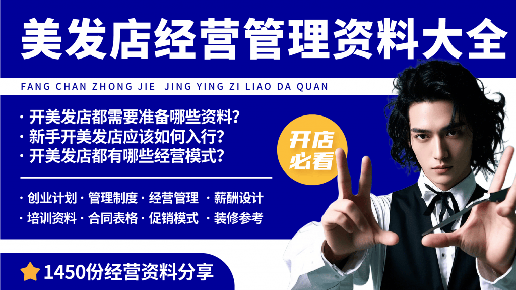 收集资料:青创社资源站,各类资源平台、行业论坛等,去搜集同行美发店成型的经营管理案例资料,把美发店创业筹备资料、发廊装修效果图等、美发店经营管理资料、美发店管理制度、美发店薪酬绩效、美发店促销营销资料、美发店员工培训资料、美发店销售话术、美发店合同表格等资料准备好,然后根据你的门店定位进行优化调整,梳理出属于你们店的经营方案。