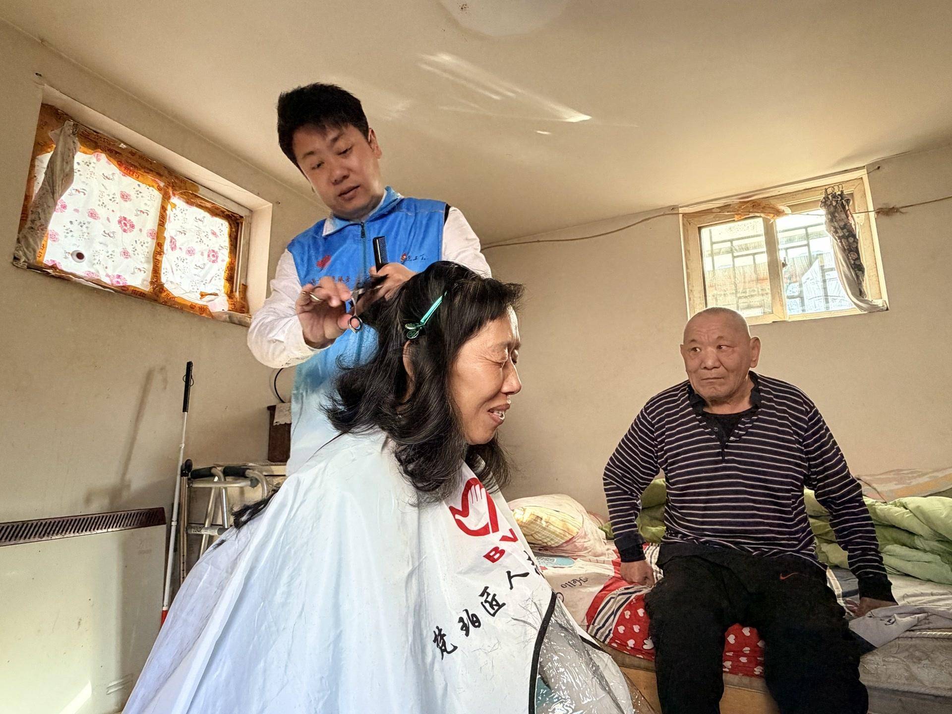理完发的张大爷坐在床边,一直盯着老伴儿的方向,嘴里念叨着“漂亮,漂亮”。理完发,王大妈伸手摸着自己的头发,嘴角笑得合不拢,连说“真好”。“这个长度您披着方便,平时扎头发别扎太紧,不然时间长了容易脱发……”孙凯收拾工具时,特意拿扫帚把地上的发茬也扫干净了,“不能给老人添一点麻烦。”