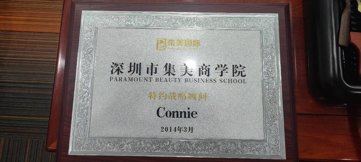 康妮咨询的荣誉之路,始于专业的积淀与伙伴的信赖。2014年,深圳市集美商学院慧眼识珠,特邀康妮老师担任特聘讲师,这是行业对Connie老师专业能力的首次高度认可,也为康妮咨询的荣誉征程拉开序幕,让其专业实力开始在美业领域崭露头角。