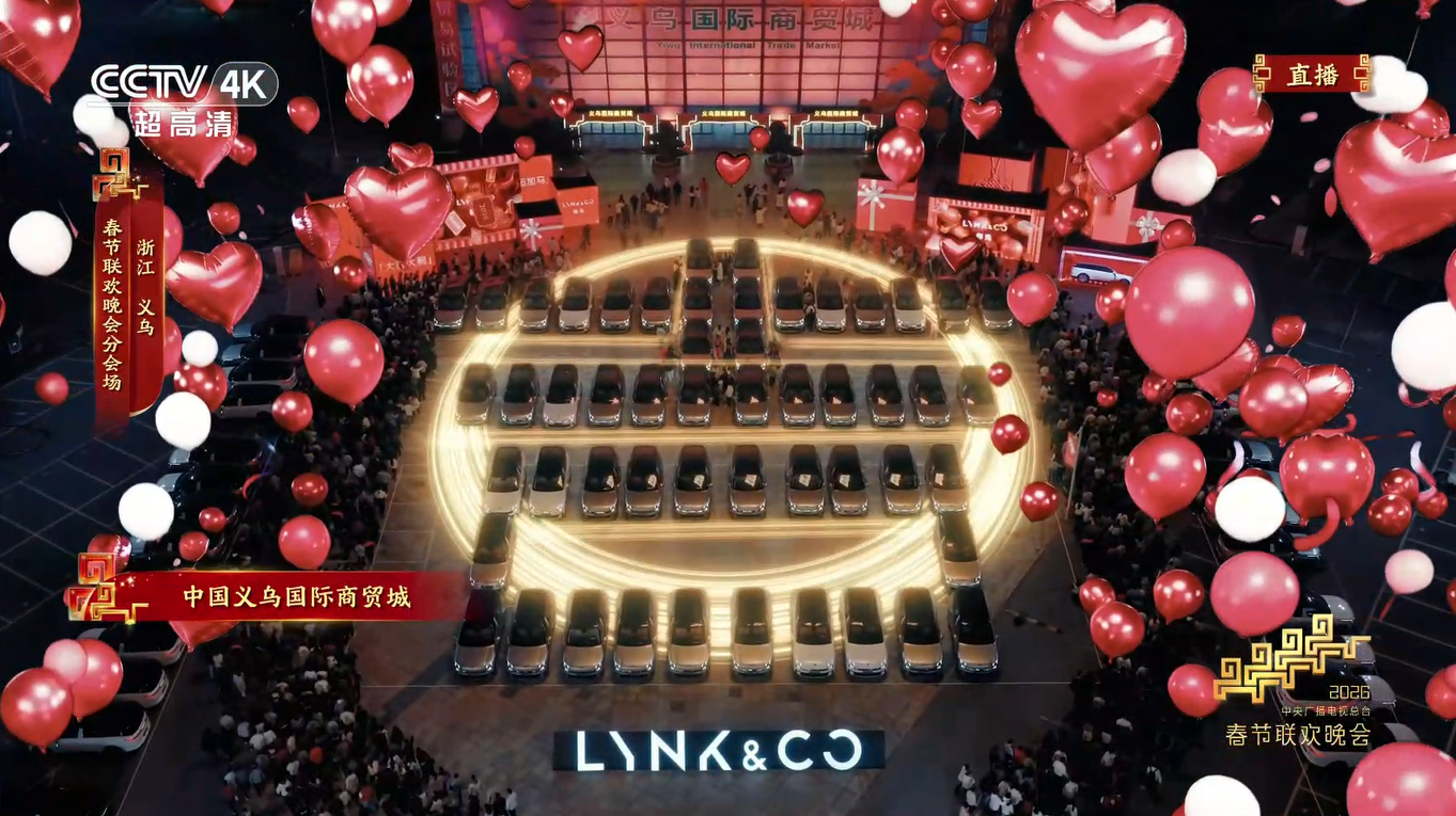 浙江科技创新系列“浙江新特产”在其中精彩亮相,吉利领克新能源汽车摆出“吉”字造型,送上“新春快乐、大吉大利”的祝福。