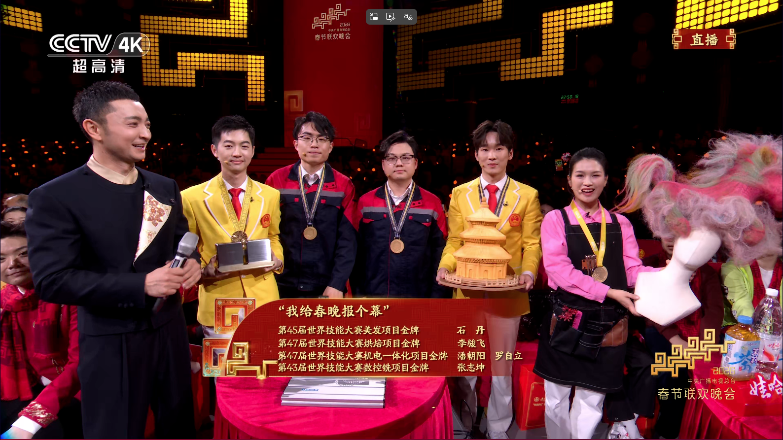 此外,浙江建设技师学院院长毛文娟介绍:“今年,学院有两位世赛选手登上春晚。身为院长,心潮澎湃,这是荣耀更是激励,自豪于他们以精湛技艺为国争光,更感到使命在肩,当育更多匠才,让技能之光闪耀时代舞台。”
