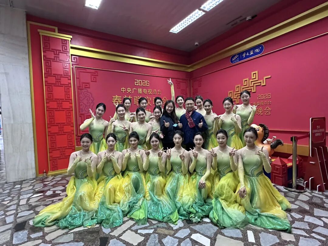 原创舞蹈作品《喜雨》由舞蹈学院青年教师李佳雯、曹端丹、袁竹、袁作朦倾力创作,杰出舞者孟庆旸领衔,舞蹈学院及附属音乐学校24名学生参演。从2022年的《忆江南》、2023年的《碇步桥》、2025年的《幽兰》,再到2026年的《喜雨》,这是浙江音乐学院舞蹈作品第四次登上春晚。
