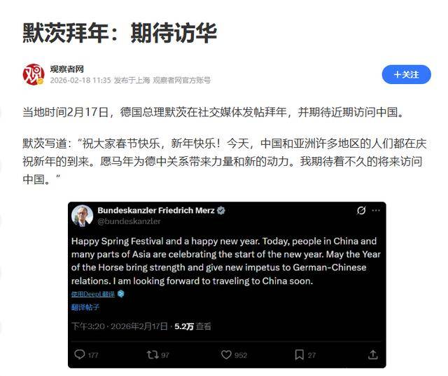 中方也释放积极信号,中国驻德大使邓洪波指出,2026年是中国“十五五”规划开局之年,将进一步扩大开放,这为德企提供新机遇。