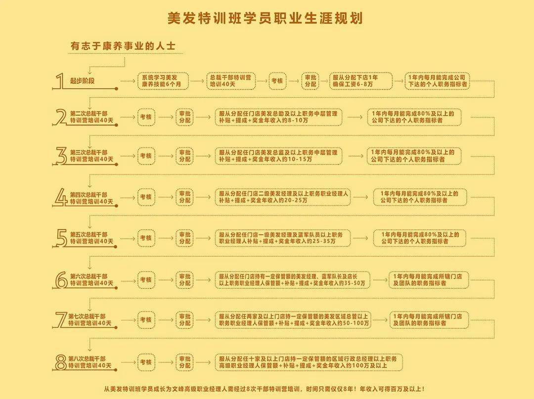 在这间被誉为世界上最大的美容学校里,陈浩博士亲自制定了文峰美发师和美容师职业发展规划,在文峰学校和文峰门店经过八个阶段的来回学习实践,修炼到最后一层就能达到年薪百万。